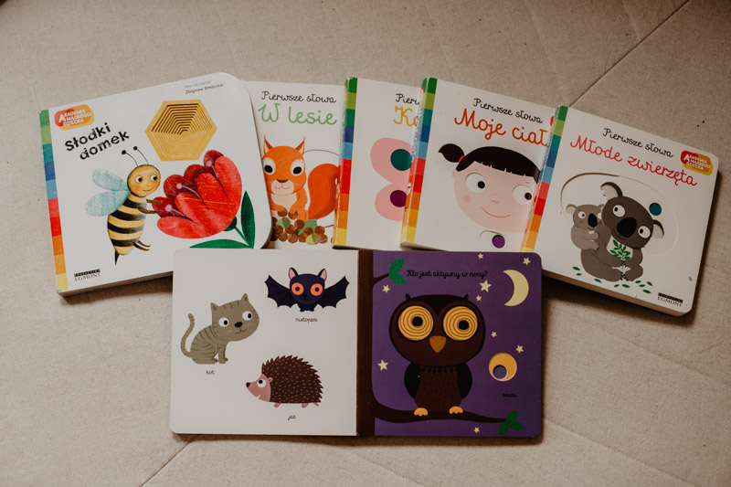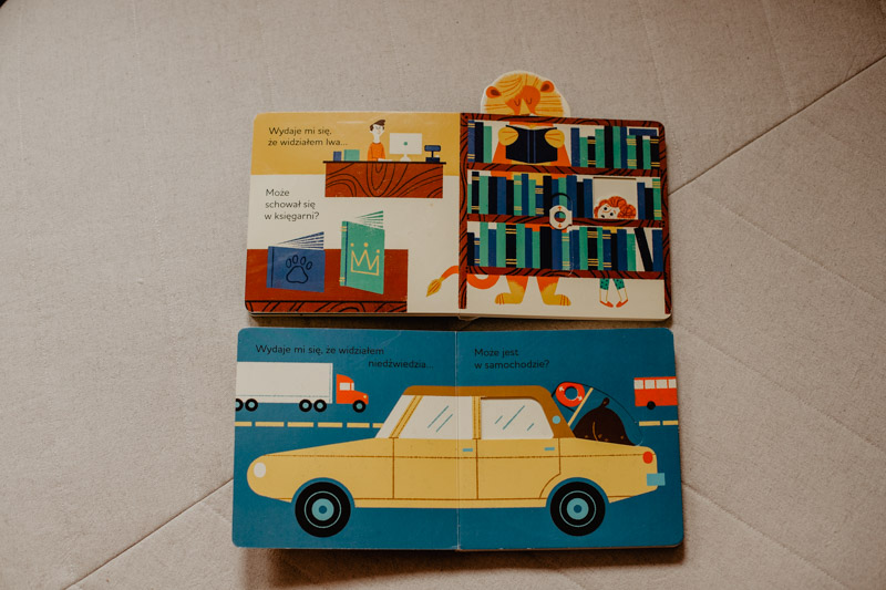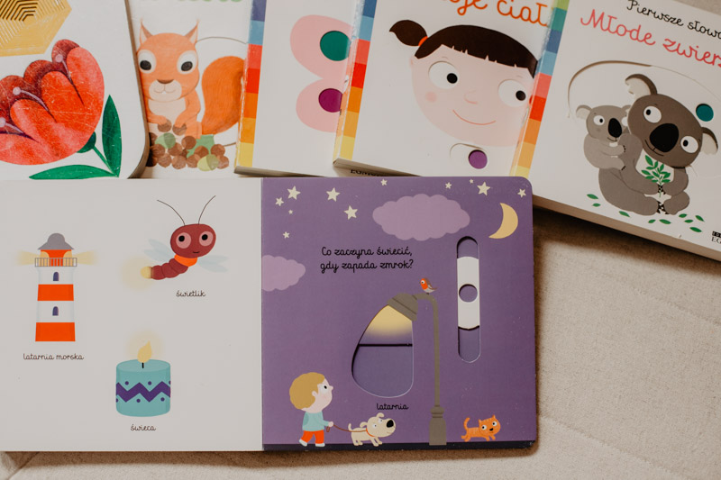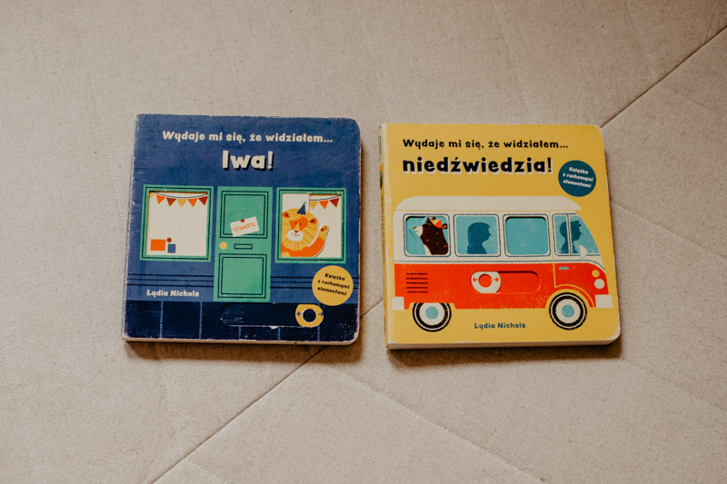 Książeczki z ruchomymi elementami zachęcają dzieci do zabawy i poznawania treści.