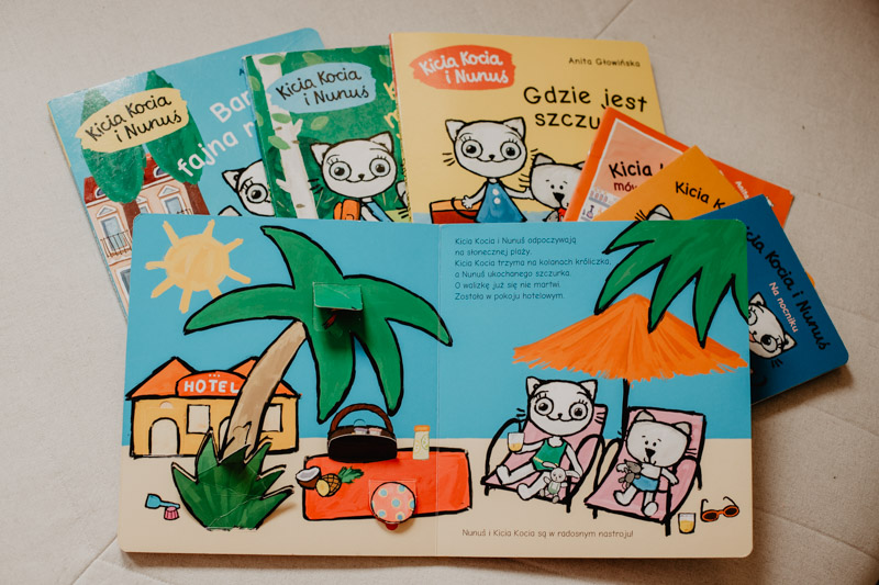 Bardzo cenię książki o przygodach małej kotki i jej brata Nunusia za bardzo mądre treści. Moja córka uwielbia wydania Kici Koci z otwieranymi okienkami i ukrytymi tam przedmiotami.
