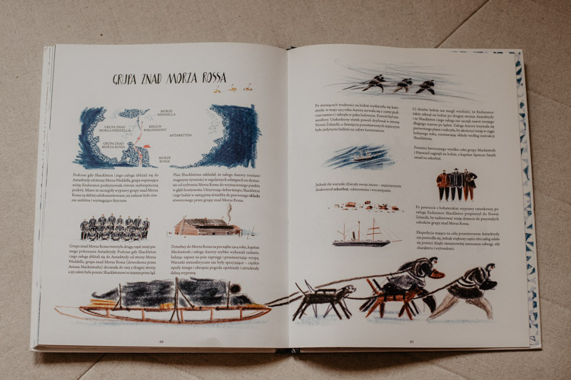 W 2014 roku „Wyprawa Shackletona” została uznana przez „The New York Times” najlepszą ilustrowaną powieścią dla dzieci i młodzieży. Ja wertowałam jej strony już wiele razy, na nowo zachwycając się pięknymi ilustracjami Williama Gilla. Wrzucam dla Was kilka stron więcej tej pięknej książki.