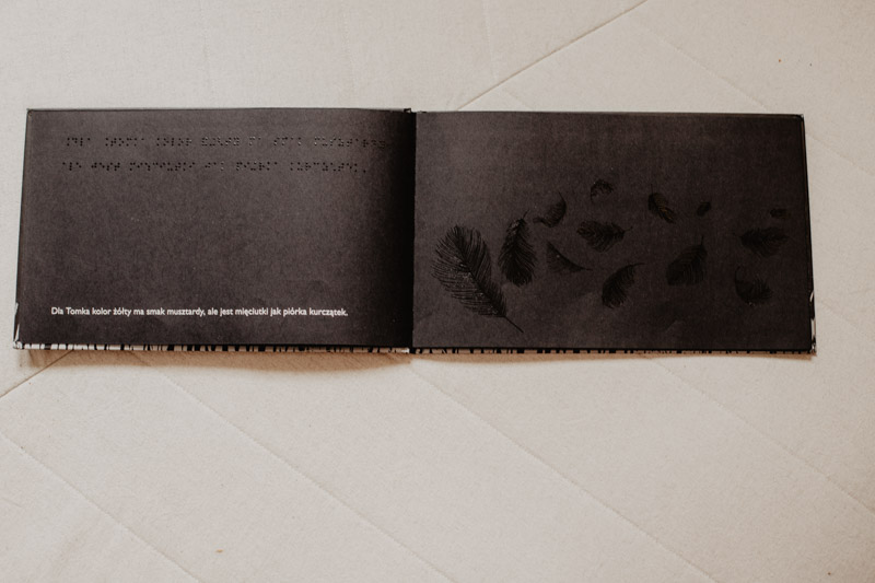 Jestem wdzięczna, że trafiłam na tą książkę! To pozycja, która ukazuje świat poprzez doświadczenia niewidomego chłopca. Każda strona opatrzona jest krótkim tekstem pisanym alfabetem Braille’a , a na stronie toważyszącej wytłoczone są przedmioty, które opisuje nam autor i które z zamkniętymi oczami można wyczuć pod palcami. To książka, która w piękny sposób pokazuje, że jesteśmy różni, że w inny osób postrzegamy świat, jednocześnie ucząc współodczuwania i wrażliwości.
